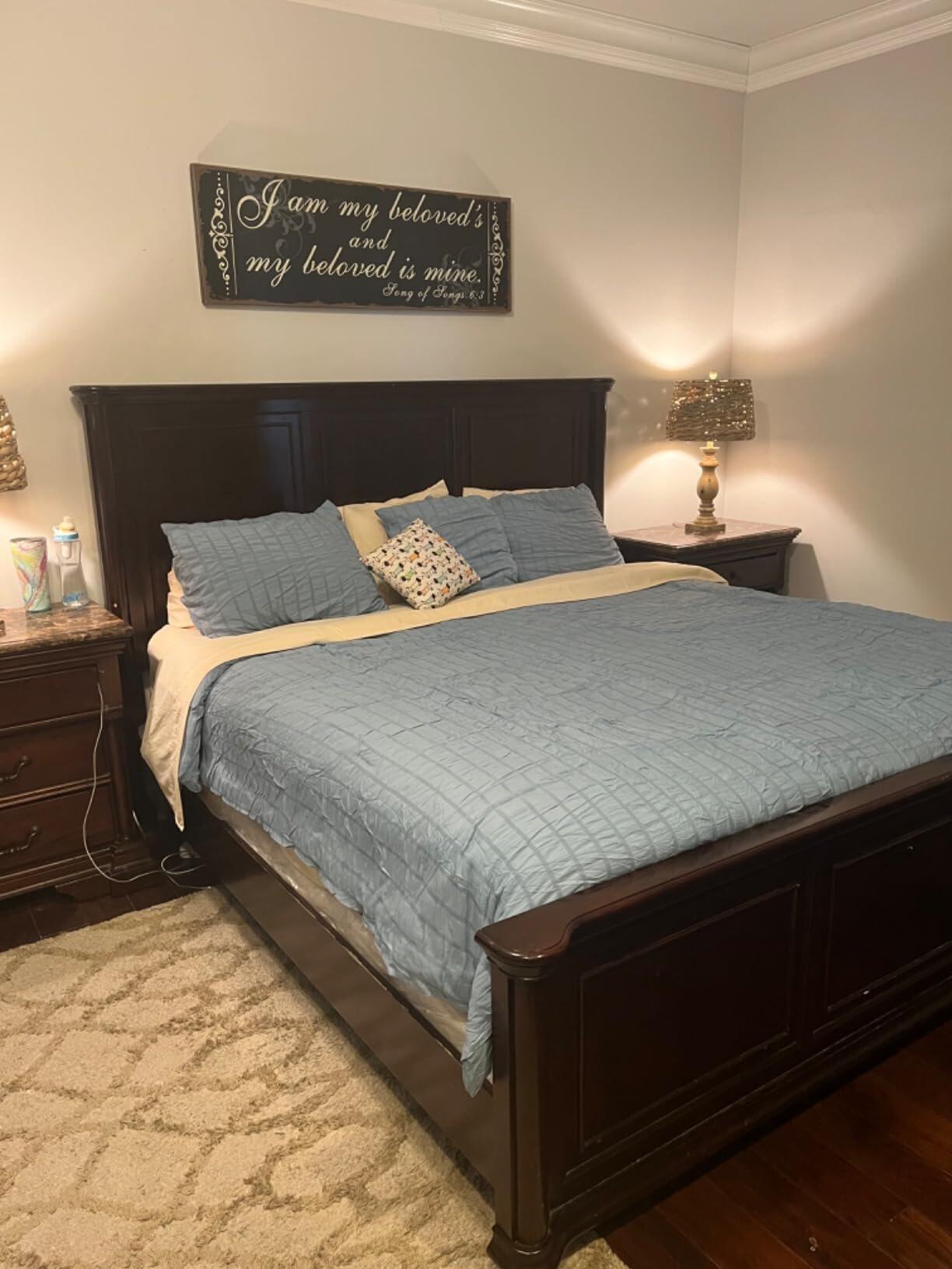 "Love the walnut wood finish and how it brightens up the space without being harsh..."