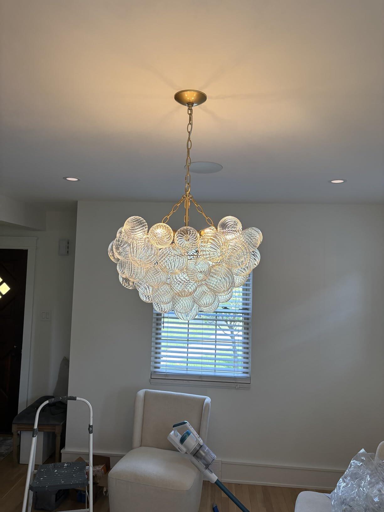 "Love this chandelier! Install was relatively easy and hanging the glass balls..."
