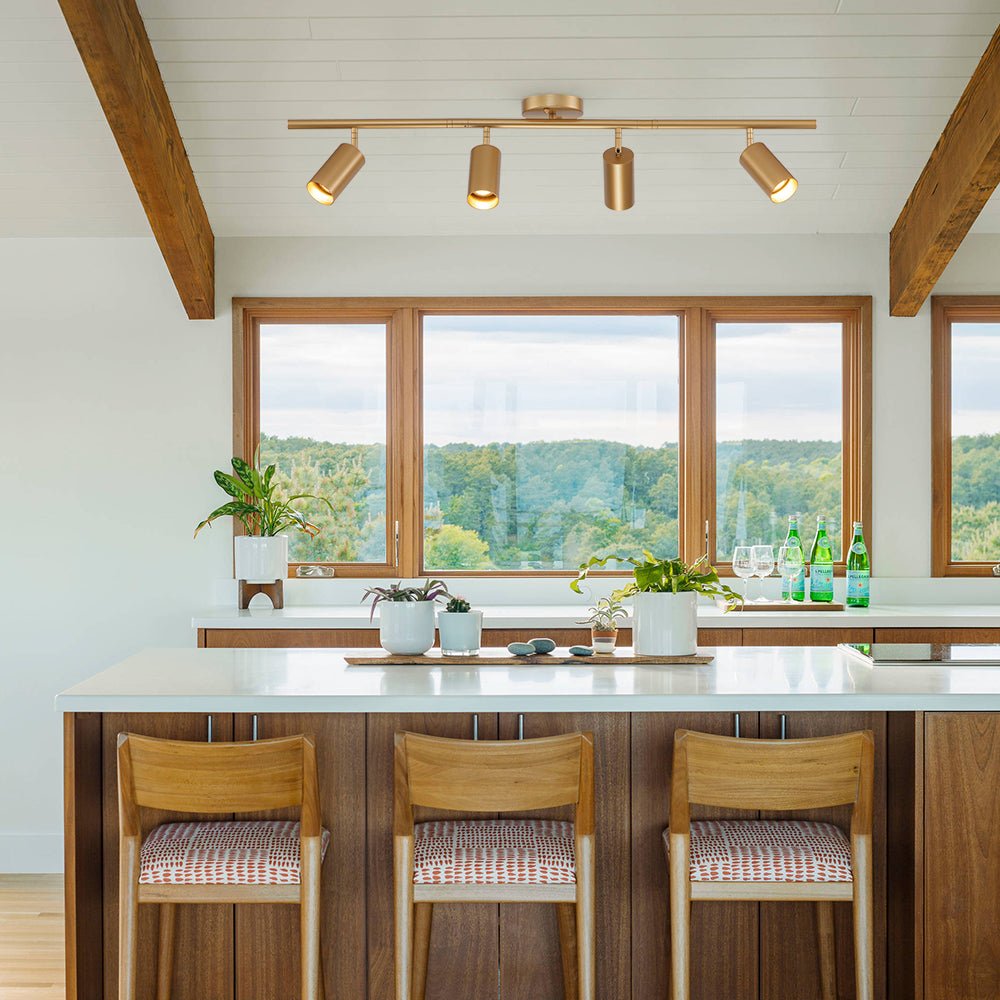 Enhance your home with a sophisticated and stylish addition with this modern semi-flush mount spotlight. Finished in beautiful gold, this ceiling track light features four angle-adjustable cylinder lights accommodating G10 bulbs (not included), which cast a warm glow that brings any room to life. Perfectly compatible with a dimmer kit, this 4-light flush mount track light is the perfect way to create an exclusive and luxurious atmosphere without any effort.