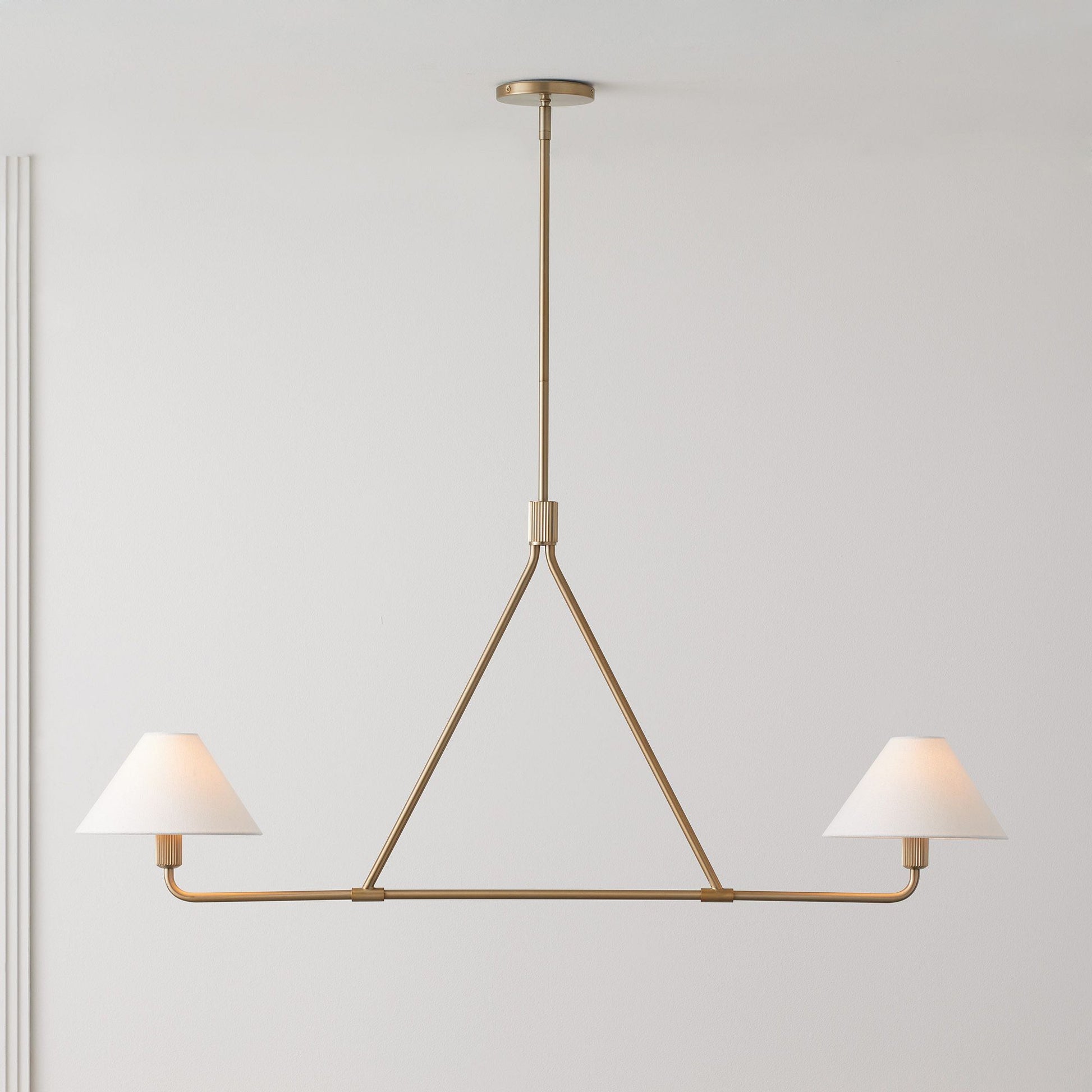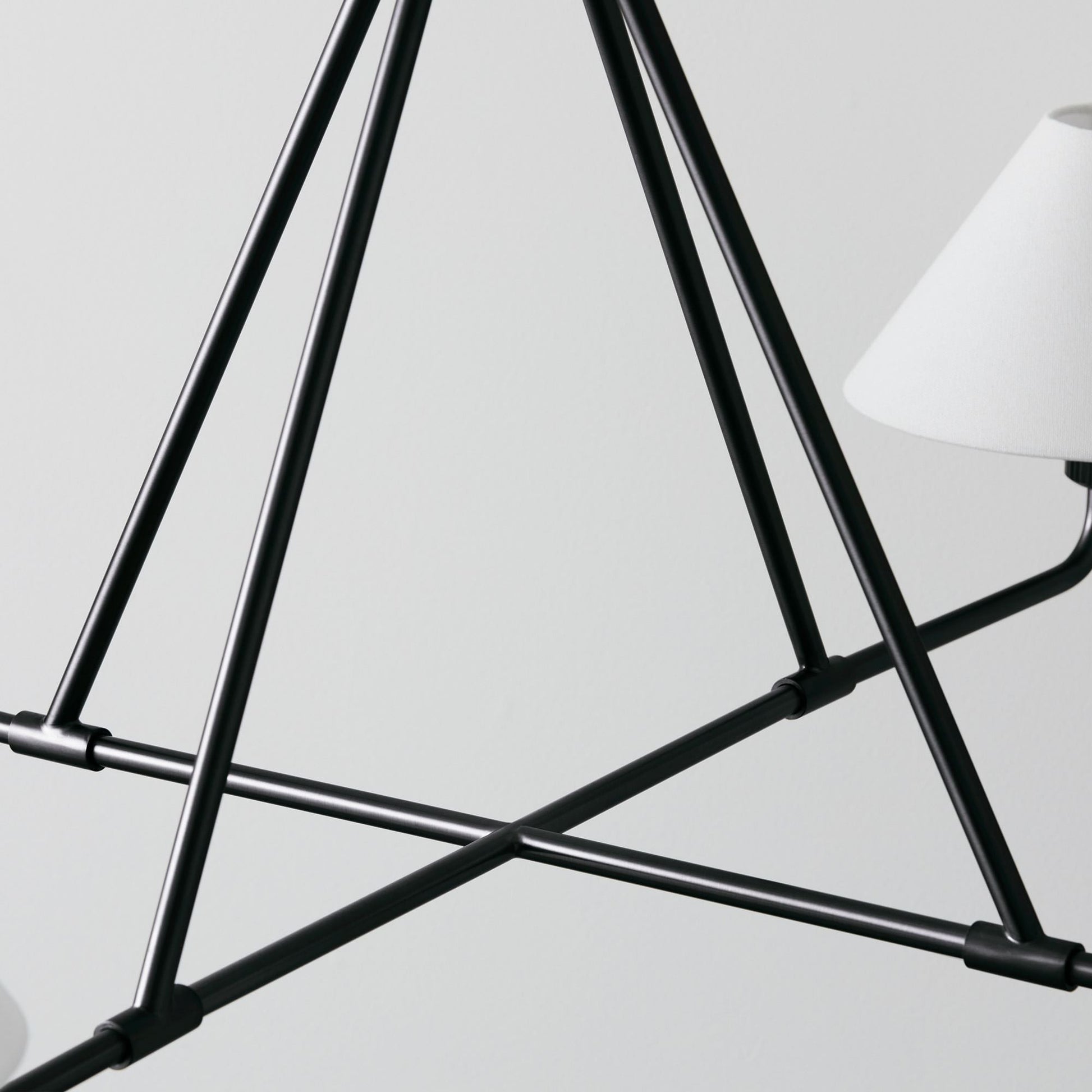 Experience the modern elegance of the Chandelier. Its sleek, angular design, inspired by minimalist architecture, brings a bold energy to any room. Crafted with simple metal silhouettes and smooth lines, this chandelier exudes a sense of soft sophistication. Elevate your space with this stylish statement piece.