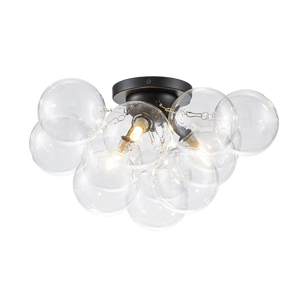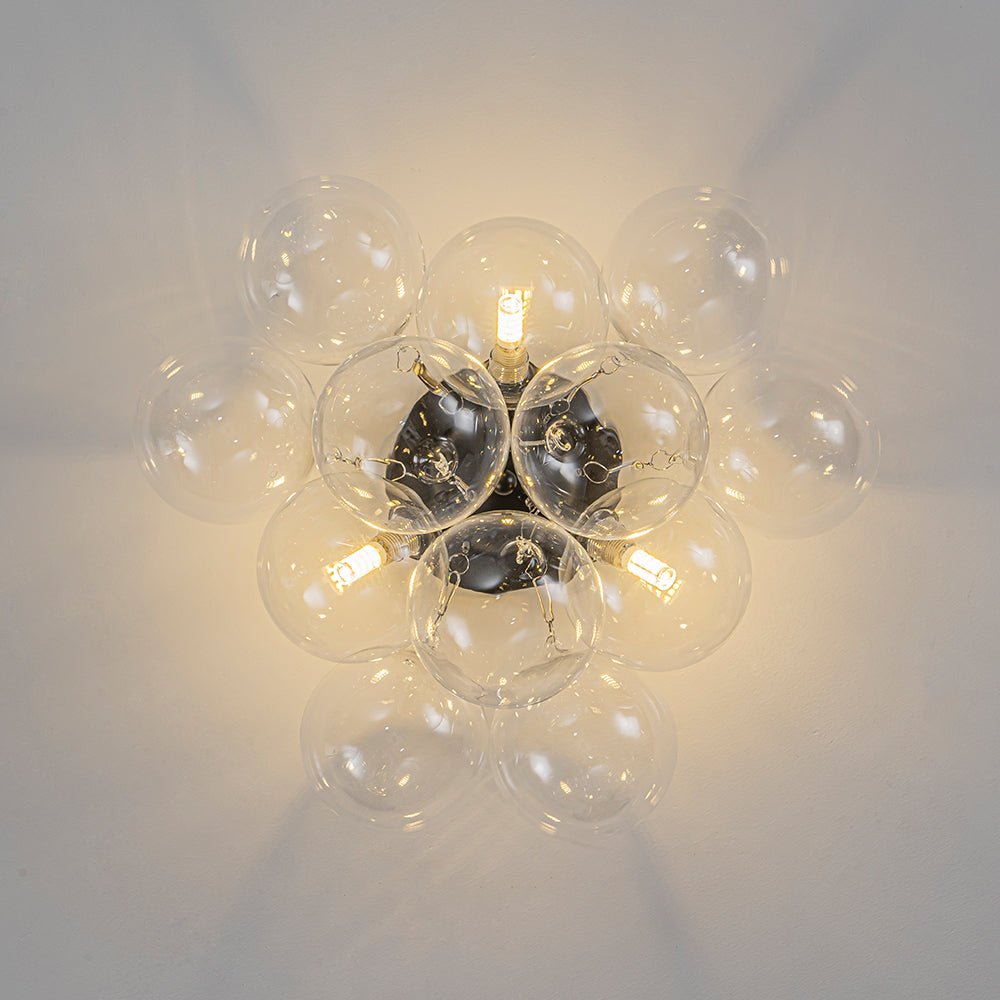Indulge in the whimsical charm and otherworldly refinement of this bubble semi-flush mount chandelier. Finished in rich brushed brass, this semi-flush chandelier features a cluster of clear glass globes gathering around the half-orb base, evoking a dreaming vision of charming bubbles elegantly emerging from the ceiling. Three G9 bulbs (excluded) deliver bright illumination, sparkling your home with these transparent spheres and making a captivating impression. Let this gorgeous glass globe bubble ceiling light bring a delicate glitter and fantastic effect to your bathroom, kitchen, dining room, living room, bedroom, or entryway.