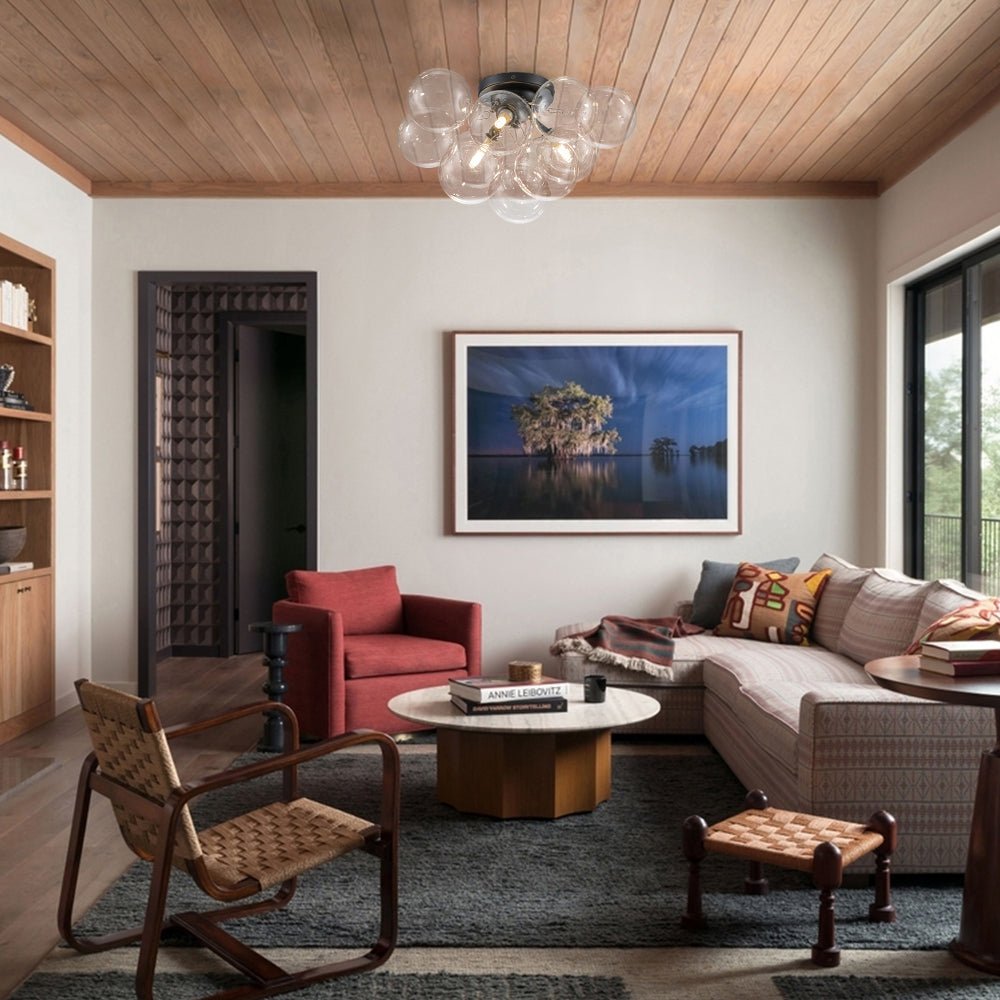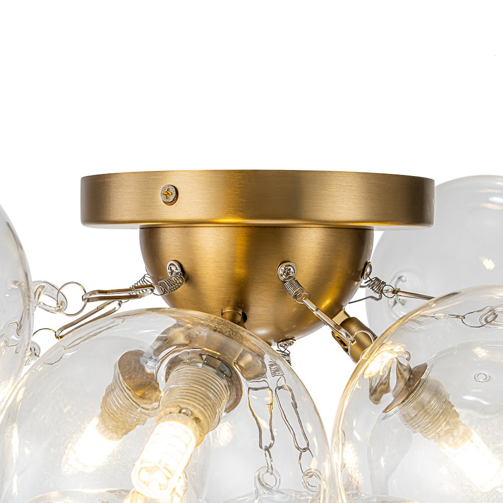 Brass Glass Globe Cluster Bubble Semi-Flush Mount