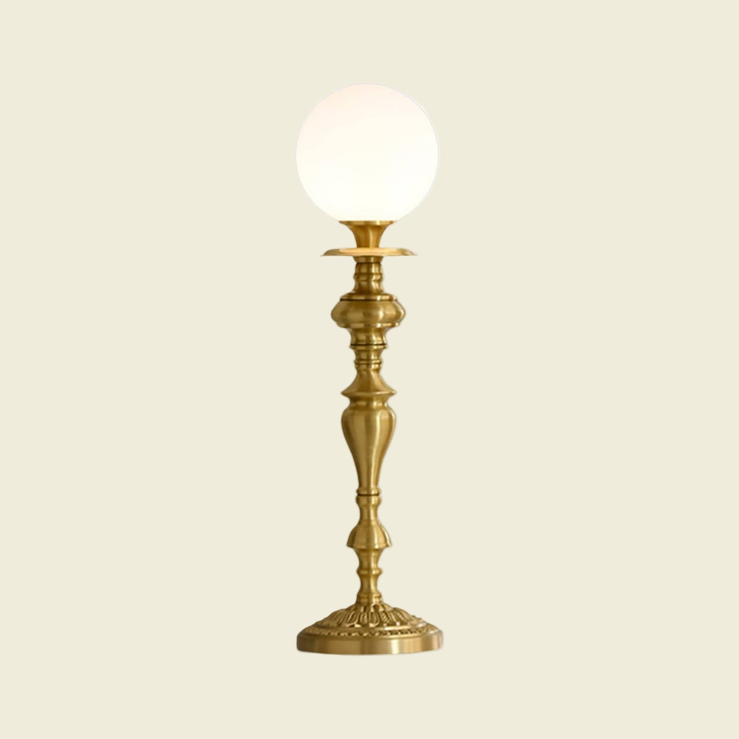 The Brass Torch Table Lamp, a masterpiece crafted from hand-blown glass and solid brass, adds a warm, luxurious glow to your home. This stylish fixture will bring a warm, luxurious glow to your dining room, bedroom, or living room. Its sculptural shape blends seamlessly with both modern and classic decor, making it a stylish addition to any bedside table or behind a sofa.