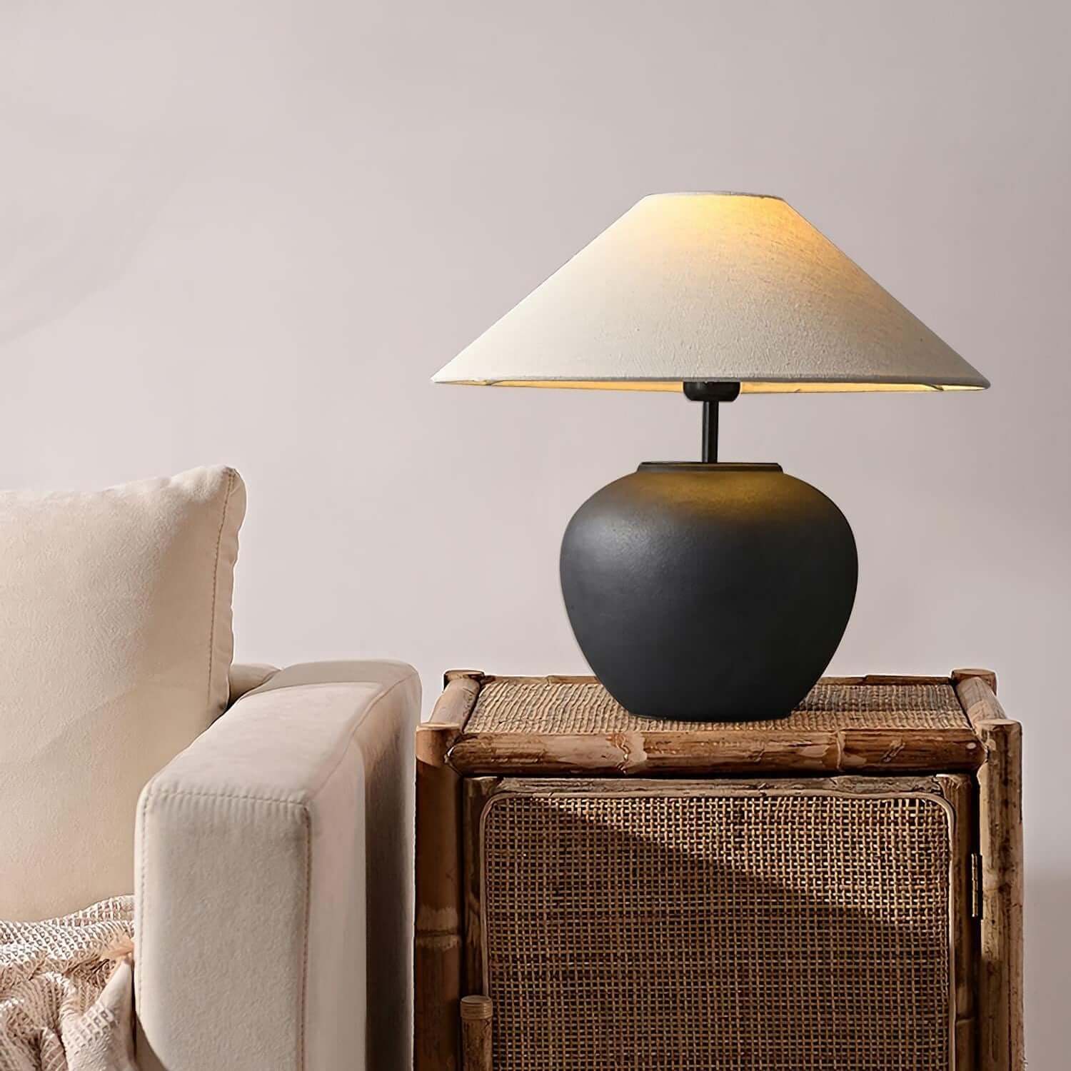 The Vintage Ceramic Table Lamp brings Mid-Century Modern charm to your space. With a textured terracotta base and a conical cream fabric shade, this lamp blends earthy warmth and sleek design. Perfect for your bedroom or living room, it adds a touch of vintage sensibility and cozy ambiance for any night.