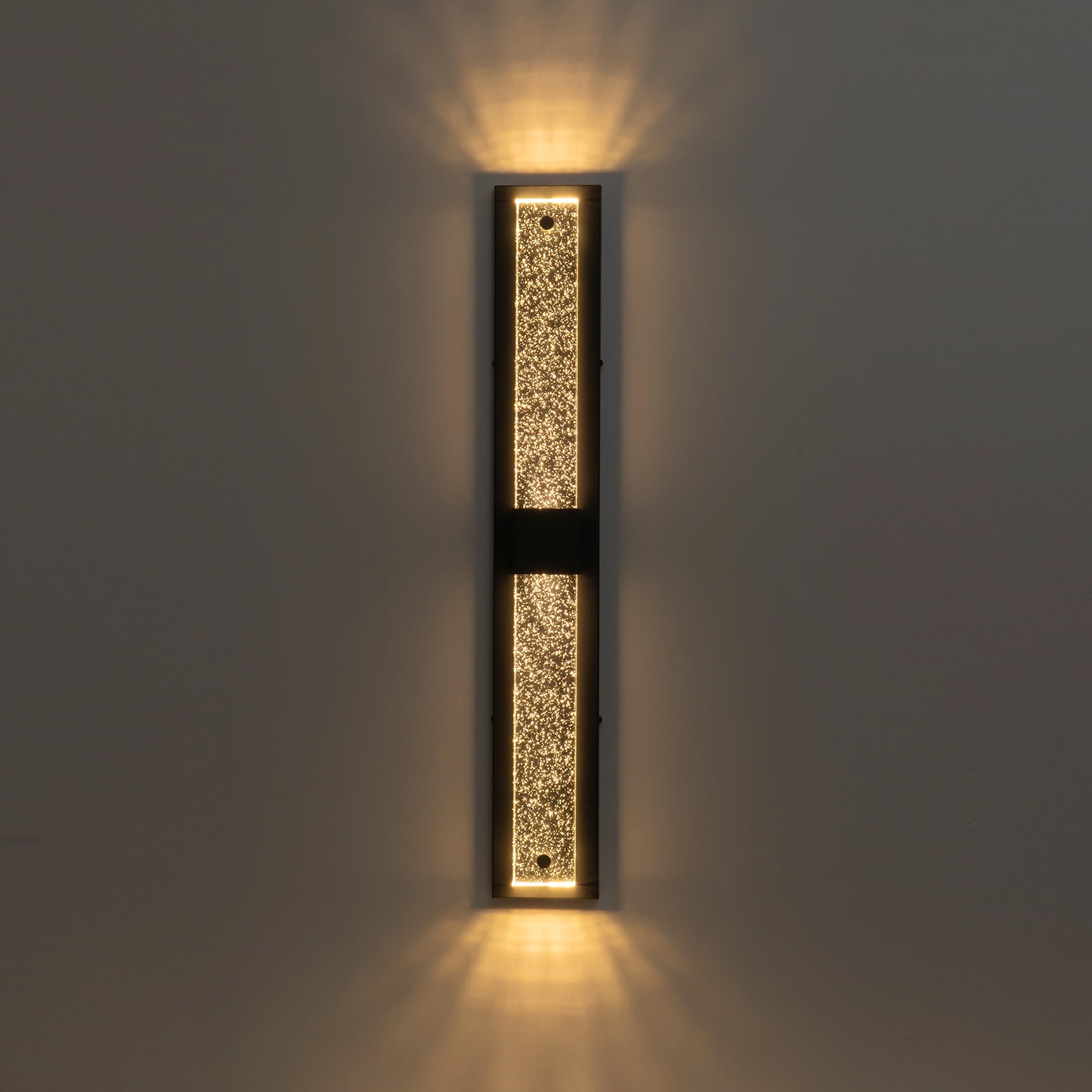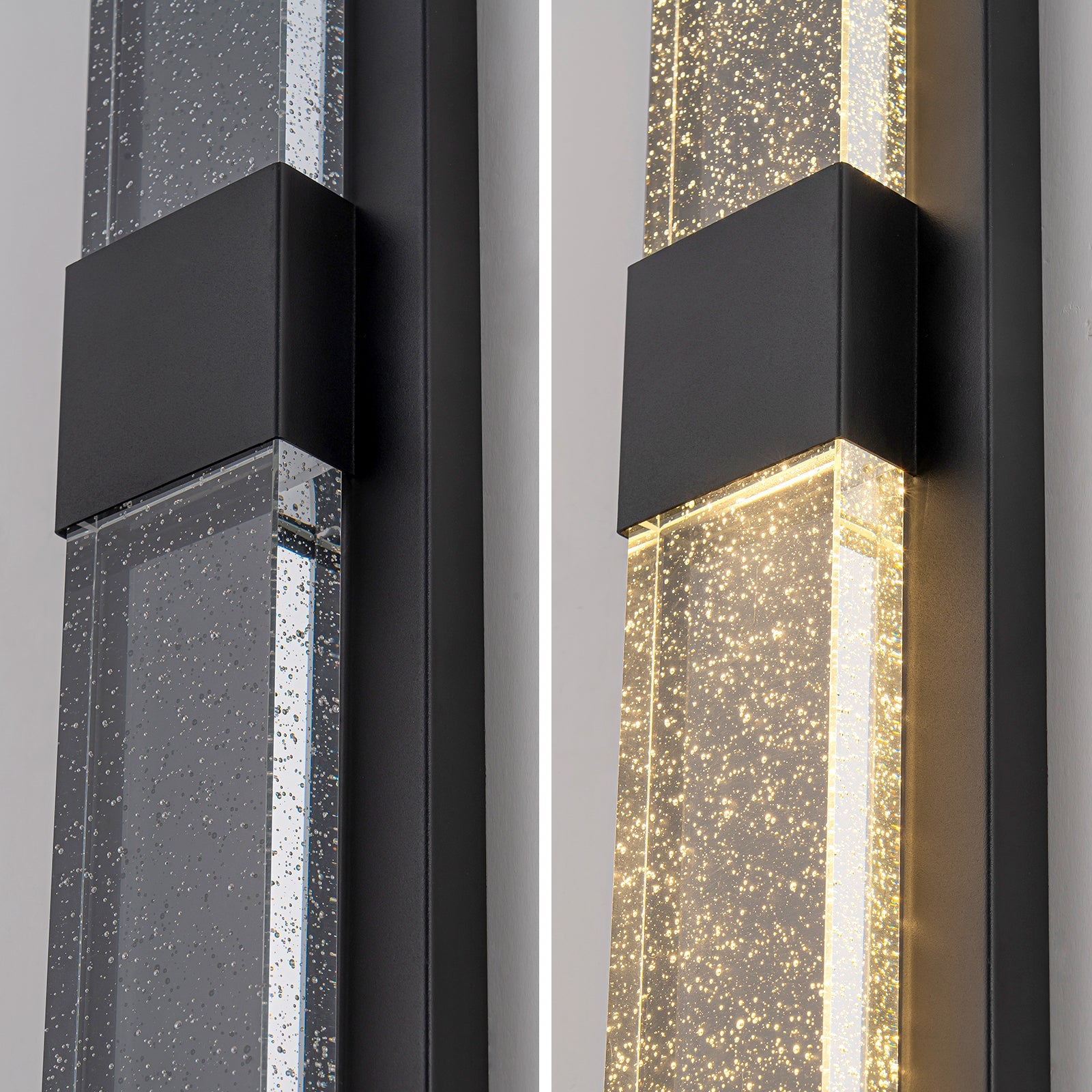 The Crystalline LED Indoor Outdoor Wall Sconce blends minimalist linear design with elegant seeded crystal accents. Suitable for both indoor and outdoor spaces, it casts a soft, inviting glow while adding a touch of refined sophistication.