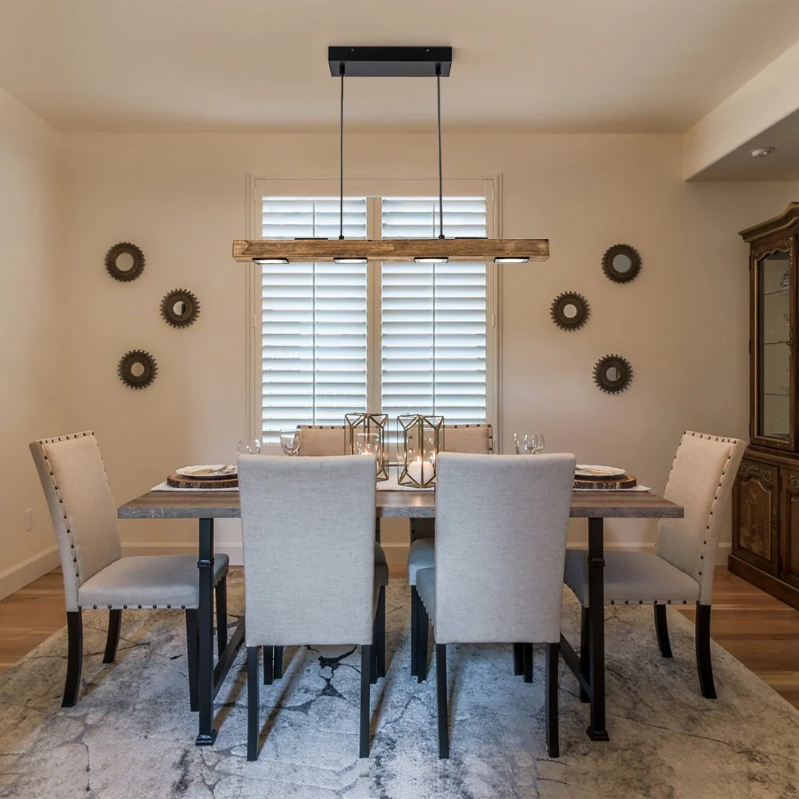 Dimmable LED Rustic Linear Oak Wood Kitchen Island Pendant