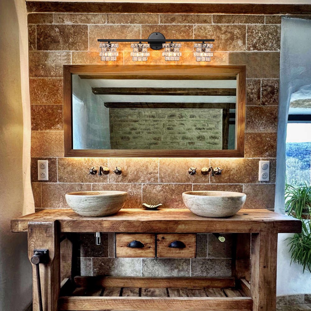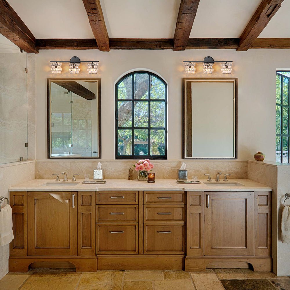 The Facet Glow Crystal Vanity Wall Sconce adds a refined sparkle to modern farmhouse interiors with its stacked square crystal shades. Designed to catch and reflect light beautifully, it delivers an elegant glow without overwhelming the space.