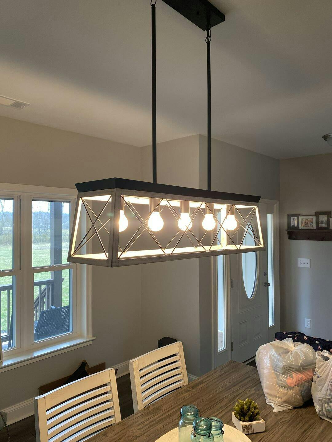 Offer farmhouse chic flair and effortless style to your home with this striking rectangular kitchen chandelier. Whether it's over your kitchen island or dining table, the open-cage X-shape design adds architectural detail without blocking the view.