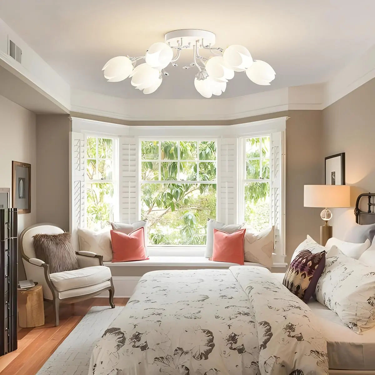 The French Country Floral Ceiling Lamp captures the essence of romance with its handcrafted floral pattern and soft golden glow. This exquisite fixture transforms an ordinary room into a charming French country retreat, making every meal a garden soiree and every evening a whirlwind of idyllic beauty.