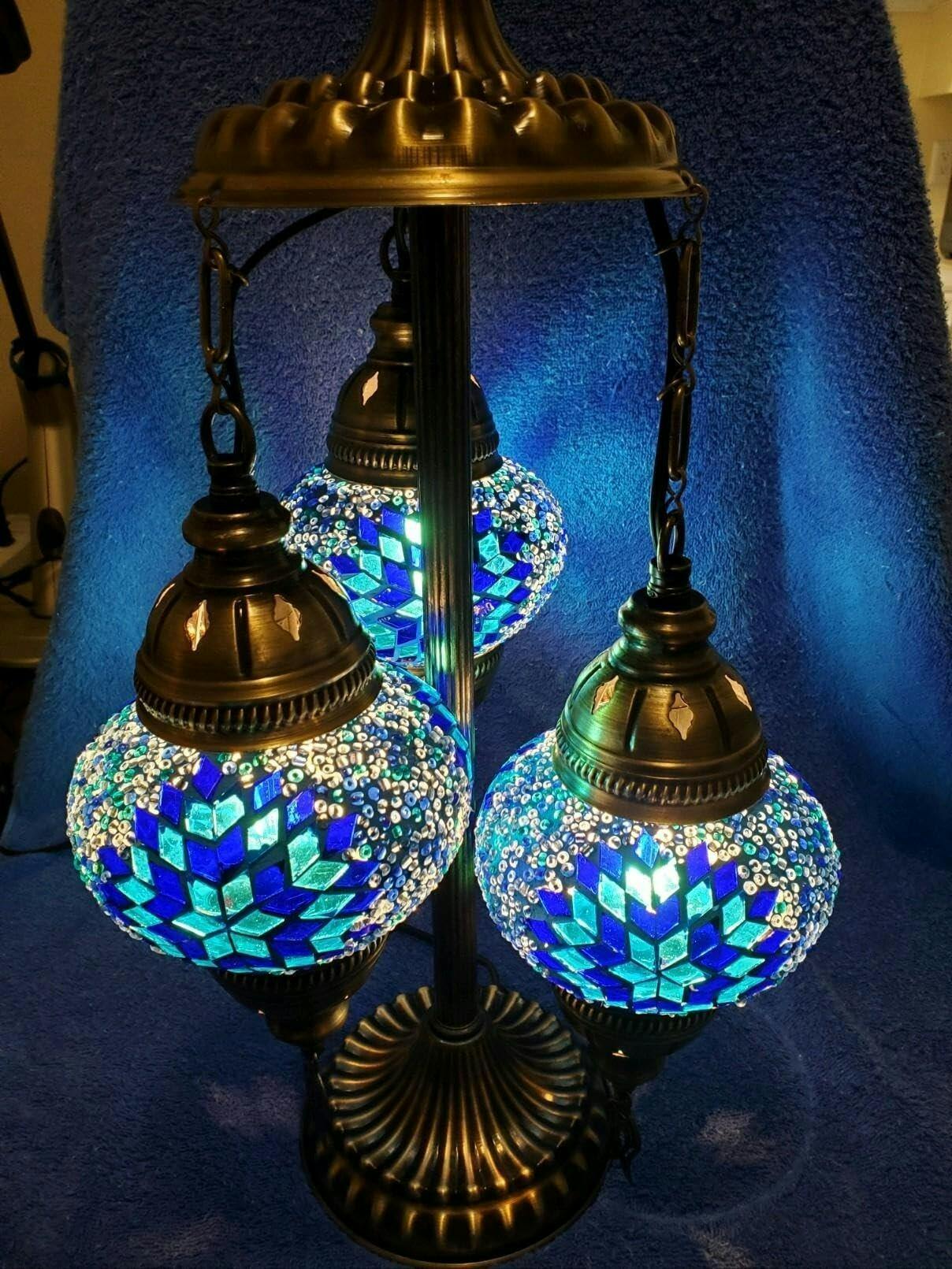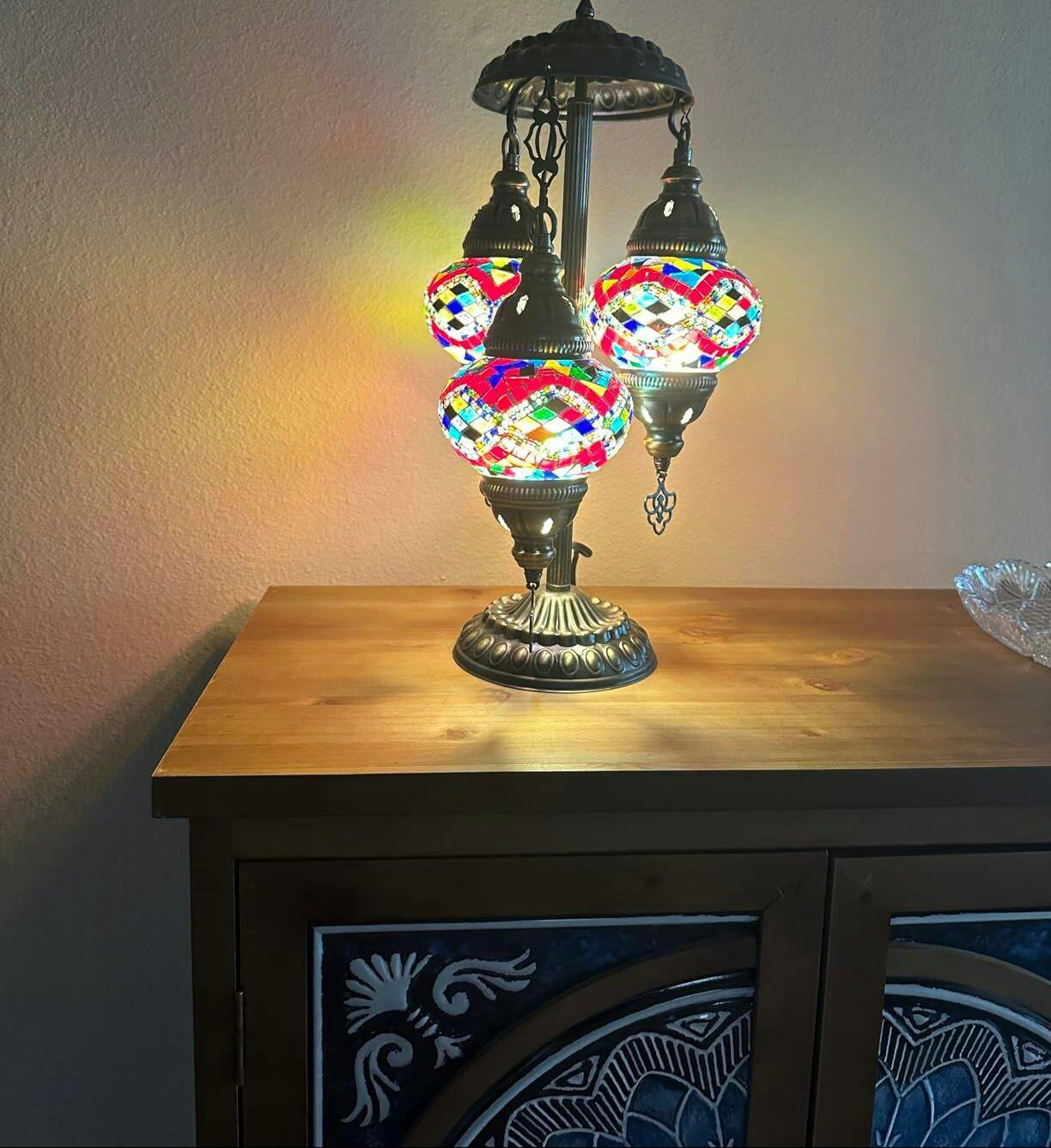 Handcrafted Mosaic 3-Globe Table Lamp | Tiffany Style Stained Glass Art