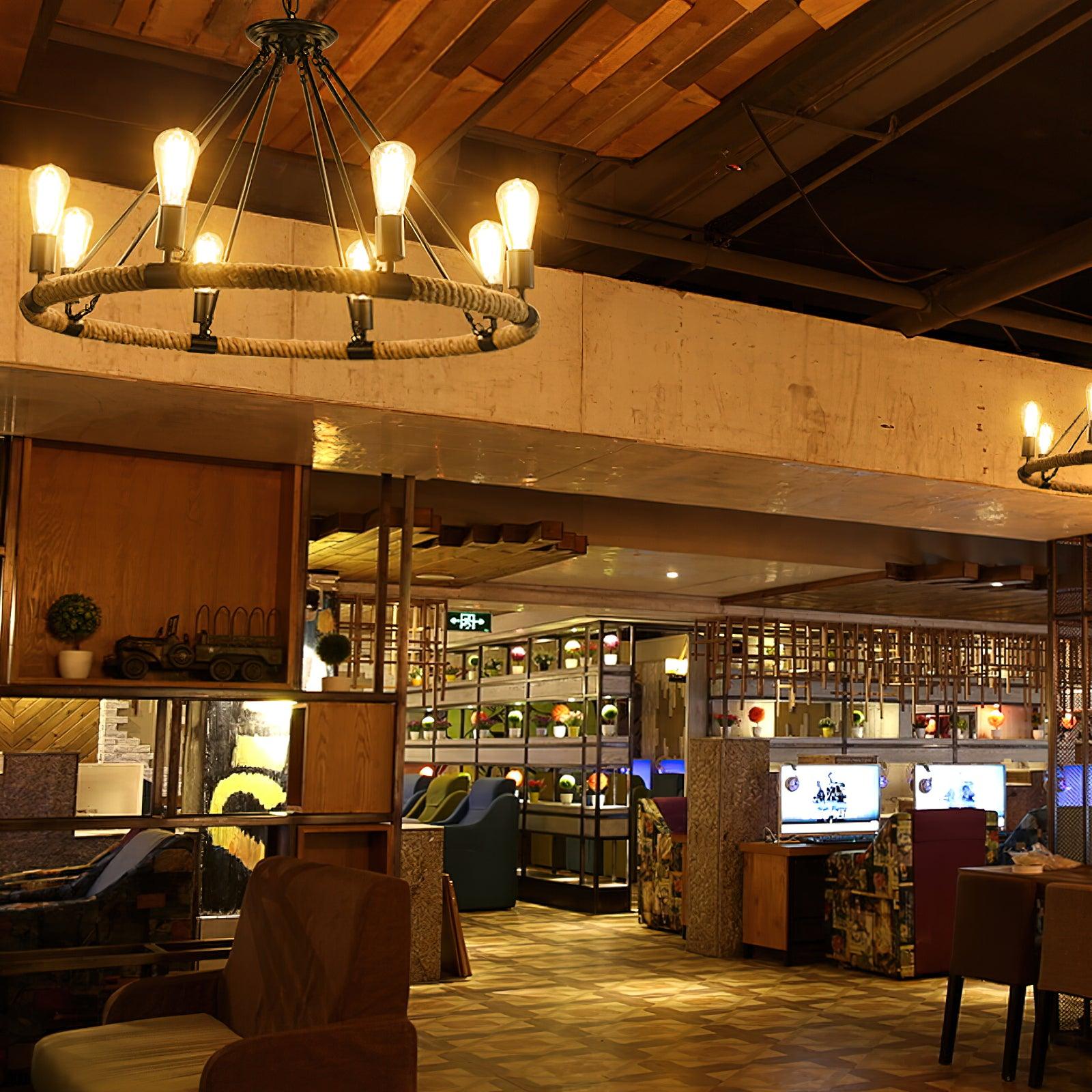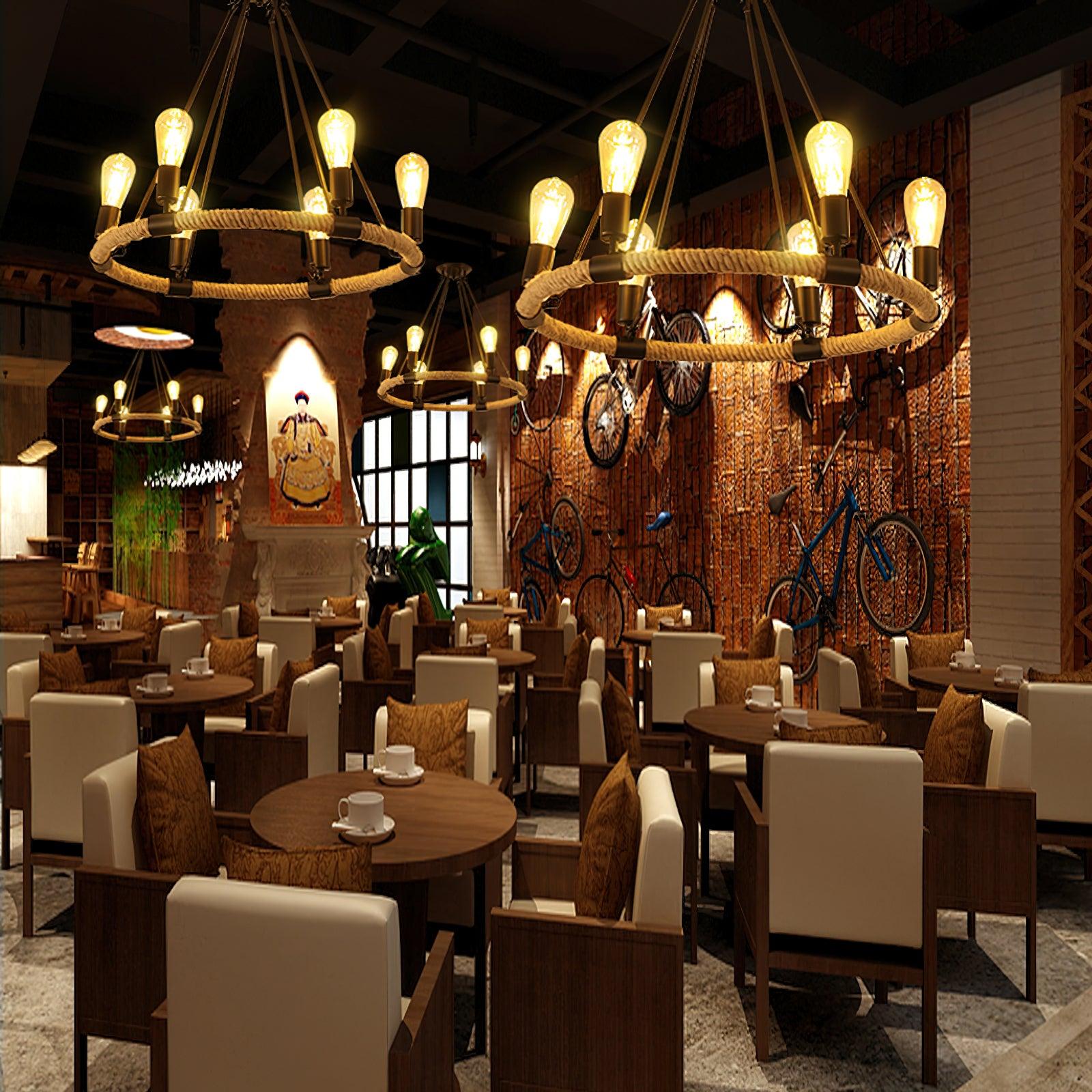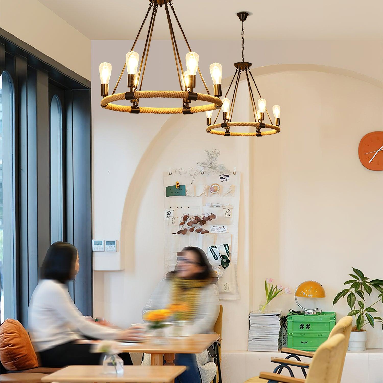 Hemp Rope Large Round Candlestick Chandelier