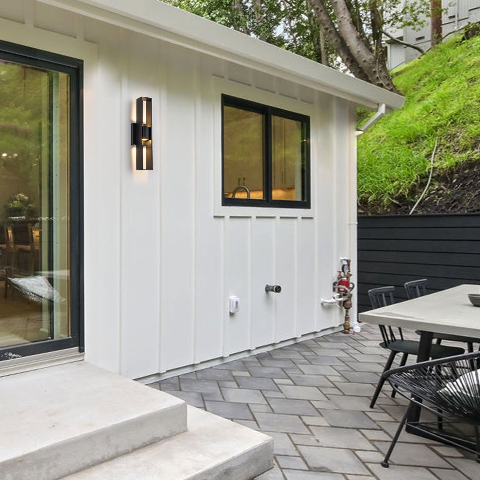 Built with an IP54 waterproof rating and integrated dimmable LED, this wall sconce provides energy-efficient, customizable illumination that enhances the ambiance of any outdoor space.
