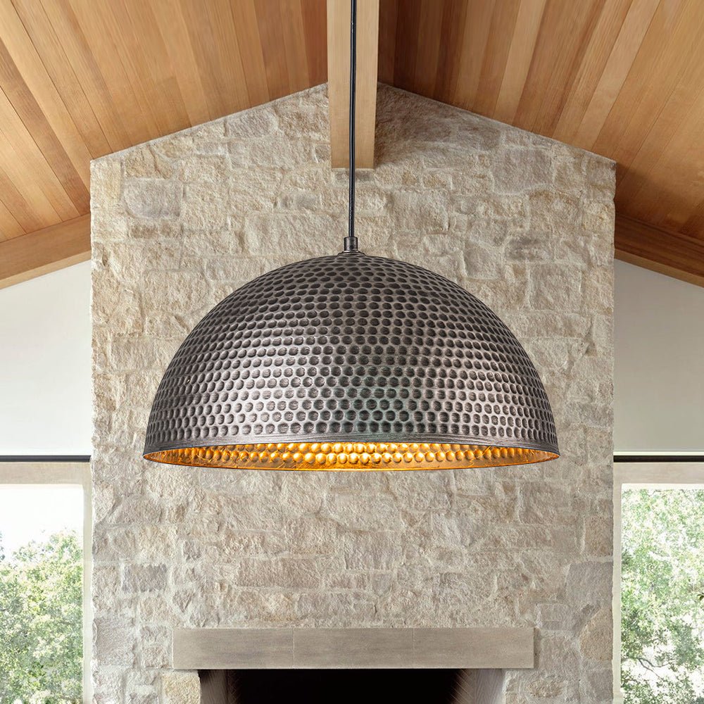 Industrial 1-Light Hammered Oversized Metal Dome Pendant