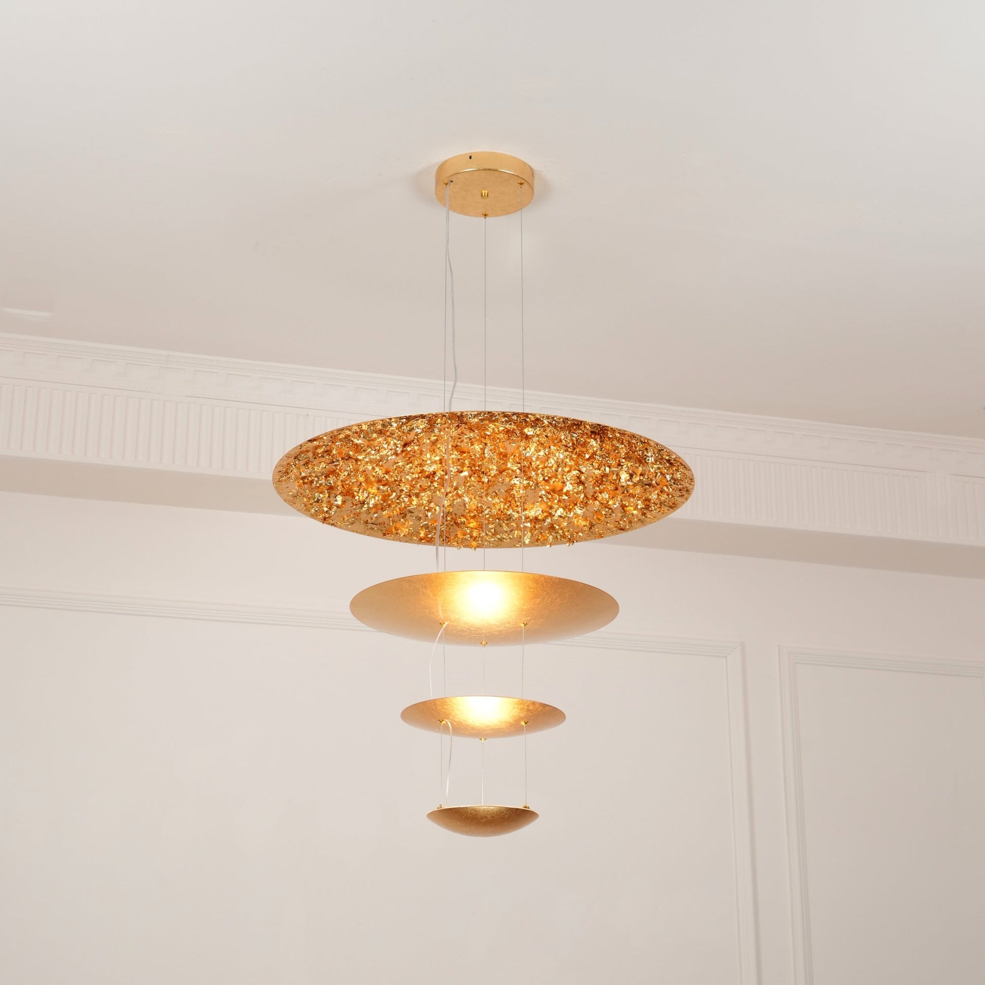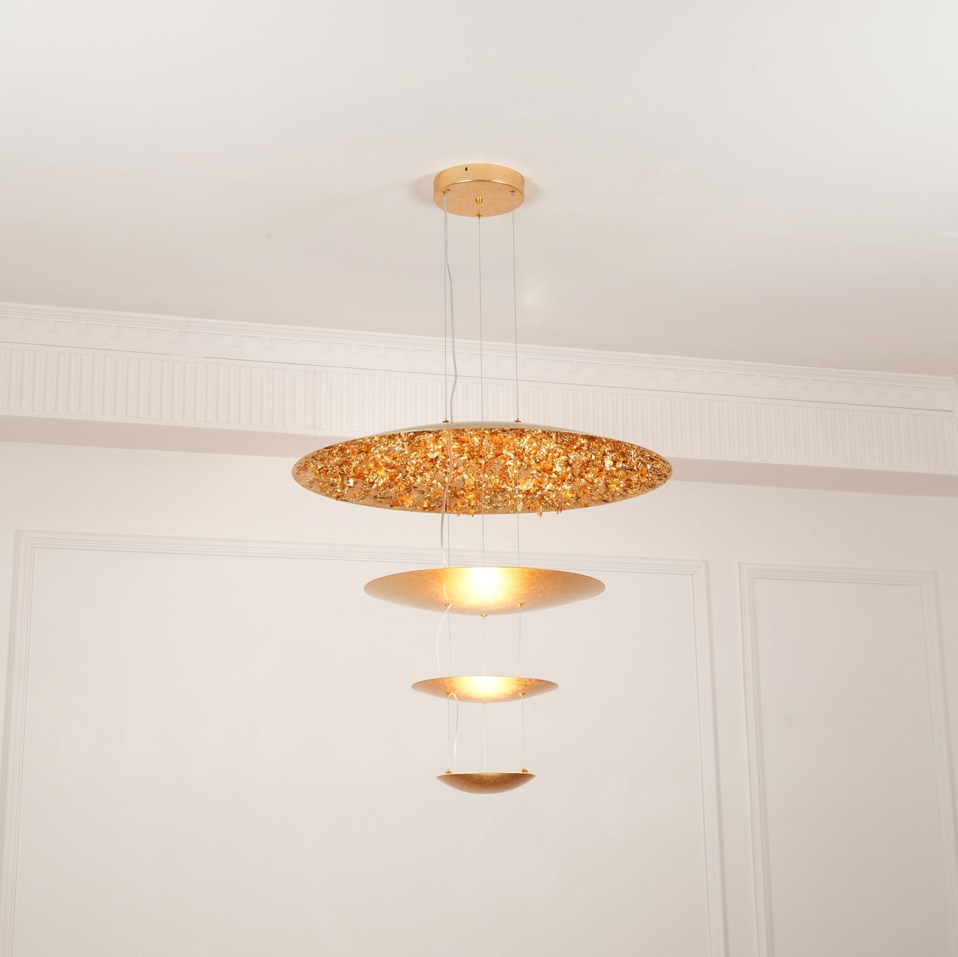 Illuminate any room with the Italian gold leaf chandelier, featuring a warm and inviting glow. Ideal for creating ambiance, this chandelier adds a touch of elegance to your home decor.