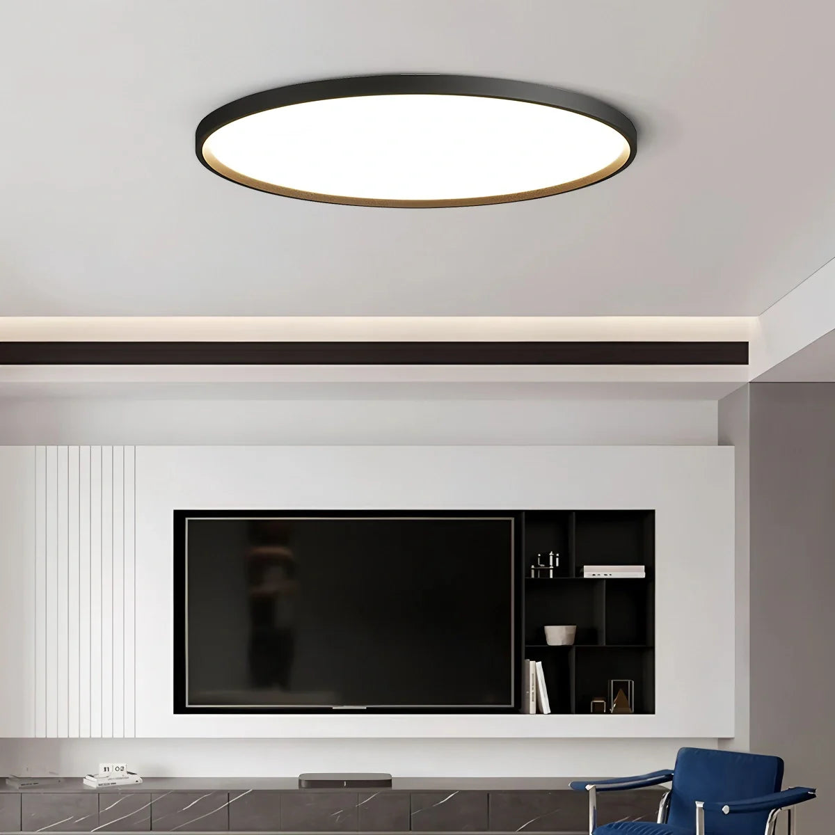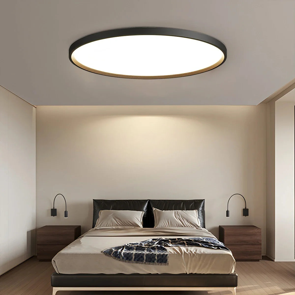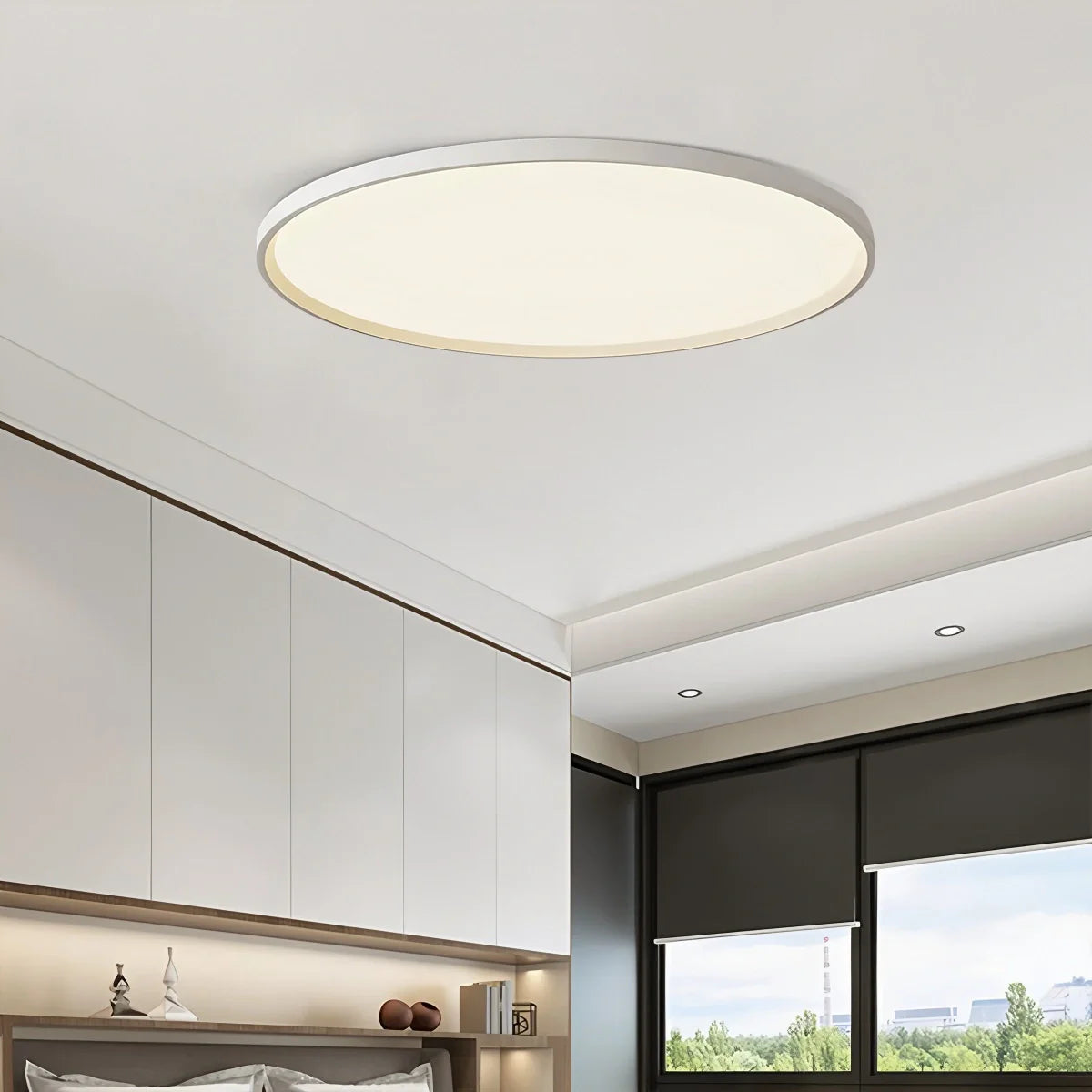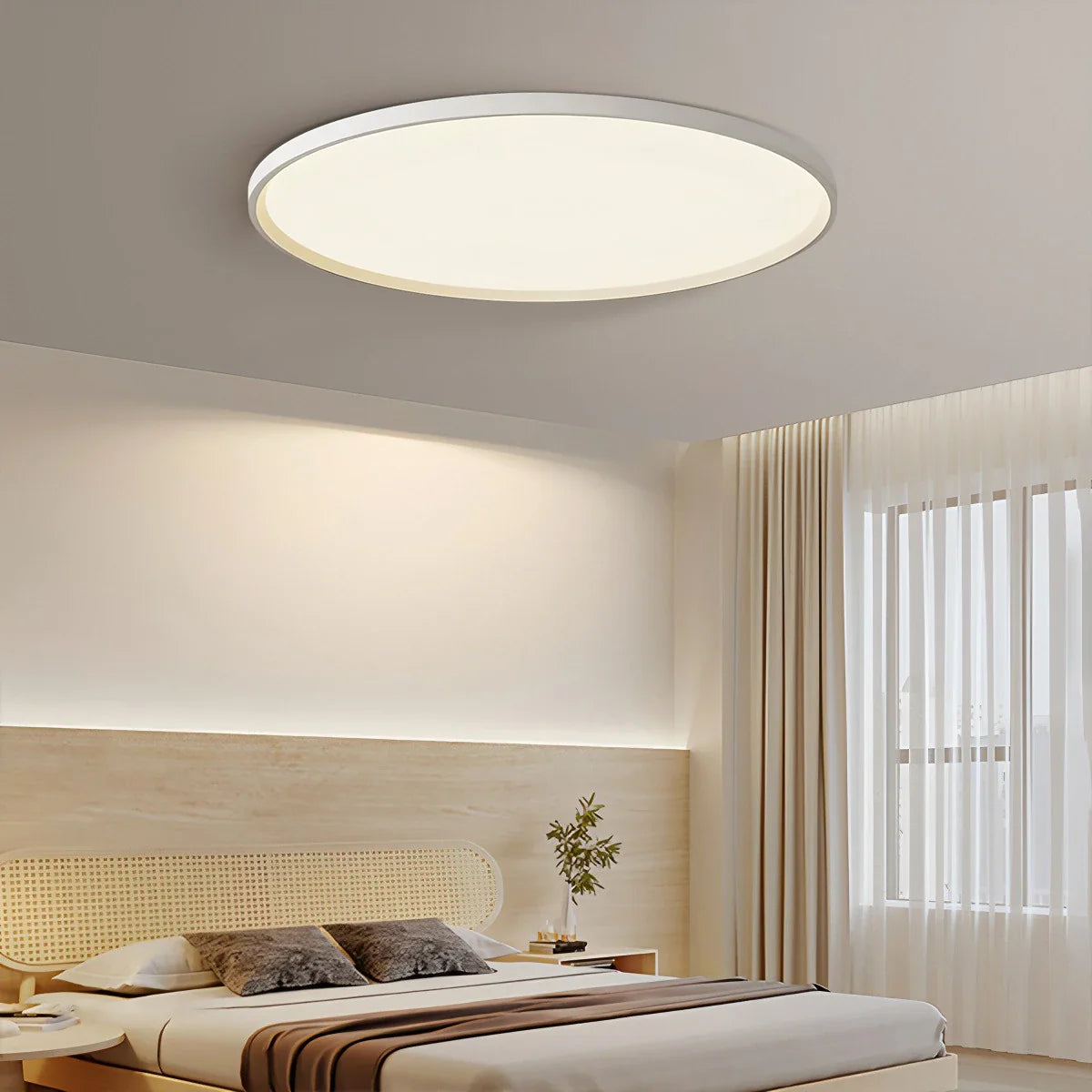 Elevate your bedroom lighting with the Antizer Flat Round Flush Mount Ceiling Light. Designed with a sleek, ultra-thin profile, this ceiling fixture delivers modern minimalism and customizable comfort. The integrated dimmable LED allows you to easily adjust brightness and color temperature, creating the perfect atmosphere for relaxation or reading.
