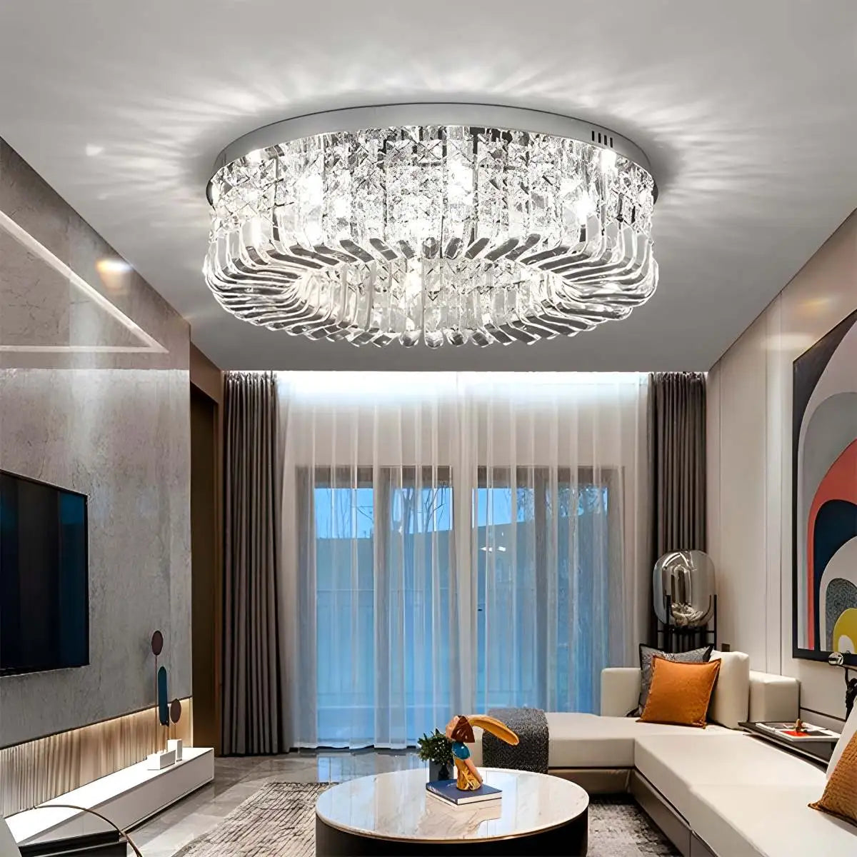 The Modern Luxury Crystal Ceiling Light blends contemporary design with dazzling crystal accents. Its premium crystals refract light into mesmerizing patterns, creating a warm, glamorous ambiance. Perfect for living rooms, bedrooms or entryways, this fixture elevates any space with its luxurious glow and modern elegance.