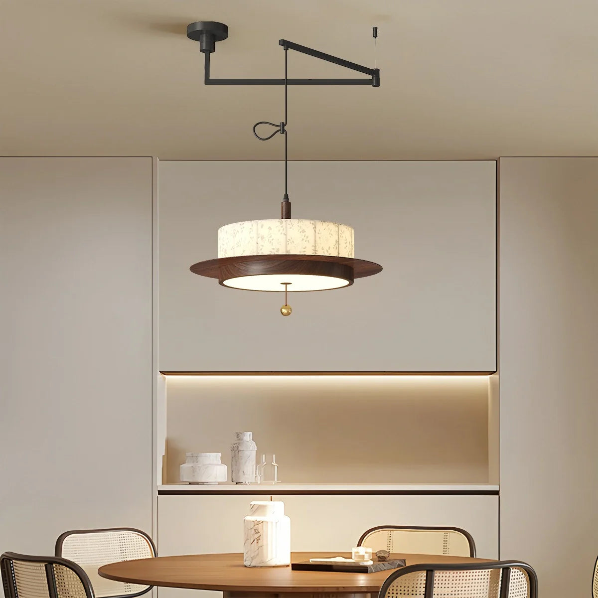 A perfect blend of modern minimalism and natural warmth, this versatile lighting solution features a soft fabric shade with elegant walnut trim. Available in two stylish configurations, it delivers both functionality and aesthetic appeal for any living space.