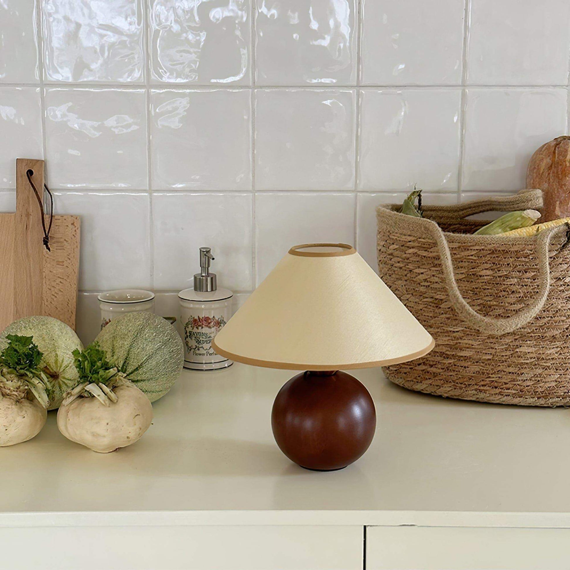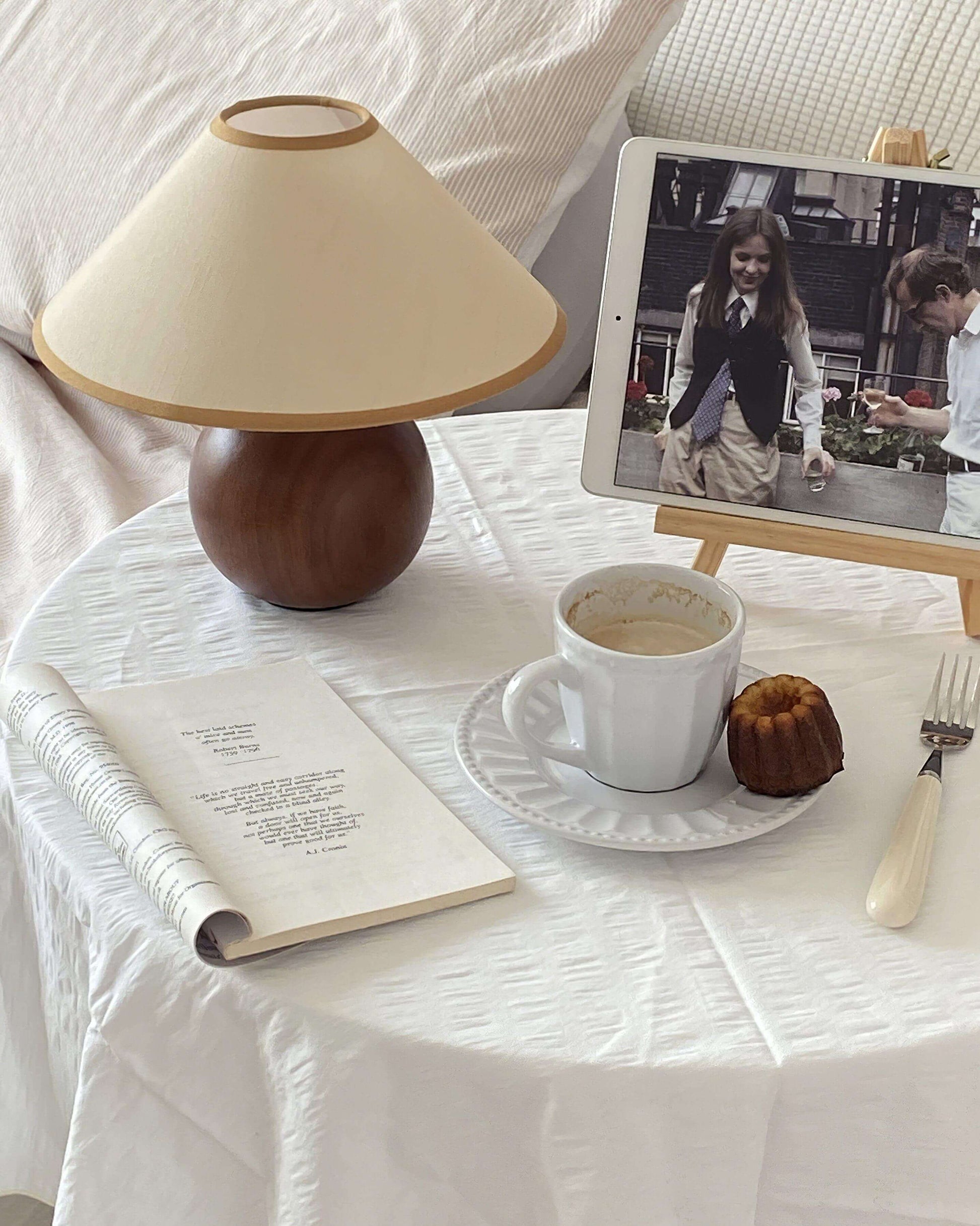 This modern Chinese-style spherical solid wood table lamp, with its classic beauty, will breathe new life into your home decor. Featuring exquisite craftsmanship and a sturdy wooden base, it exudes a luxurious and elegant air. The beige fabric shade paired with a refined linen fabric lampshade creates a balanced lighting effect, adding a touch of sophistication to your space.